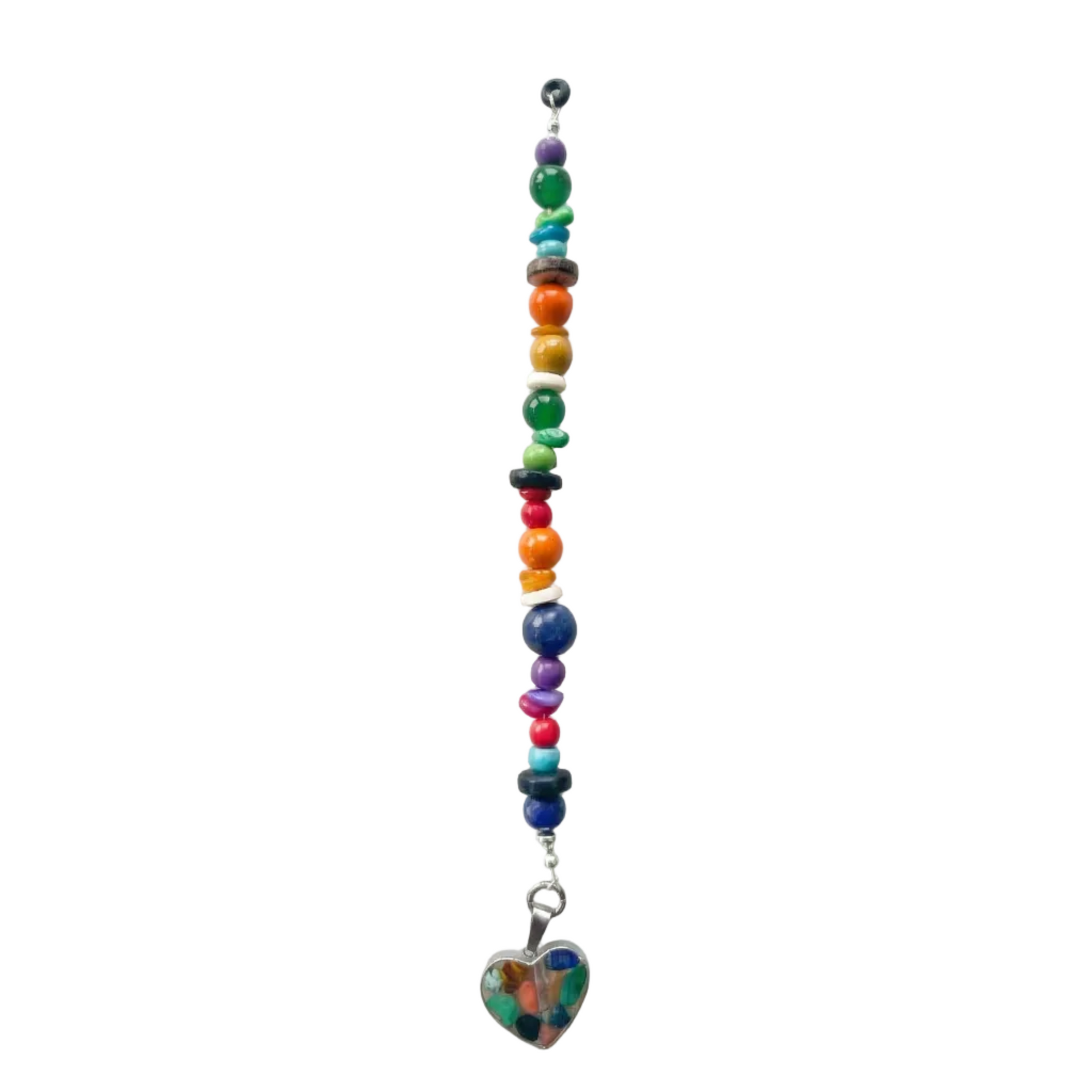 A joyful burst of color, All My Favorite Colors I is a love letter to vibrant expression. Rainbow tones meet organic textures in a charm that feels spontaneous and bold. The heart pendant grounds the piece with warmth, while each hand-beaded section adds its own rhythm. Handmade for your PuffCuff and secured with a silicone jump ring — this one’s made to celebrate.
