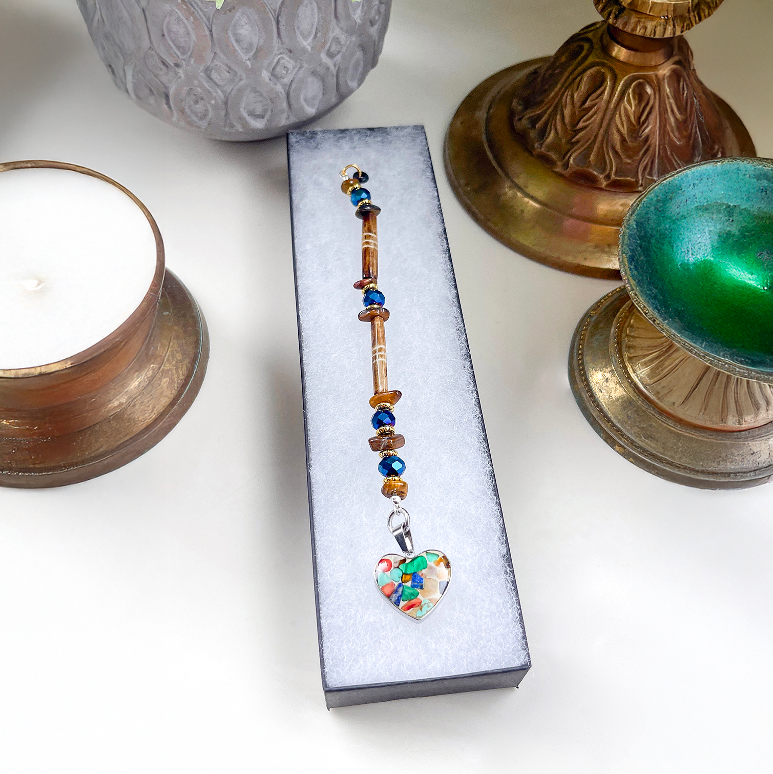 Colorful, soulful, and full of intention, Mystic Heart is a handcrafted charm featuring mixed gemstones and a heart-shaped pendant. Inspired by connection and authenticity, it’s a reminder to lead with love. Every bead tells part of a story — yours. Made by Ceata and secured with a silicone jump ring for your PuffCuff. Gift-boxed and one of a kind.
