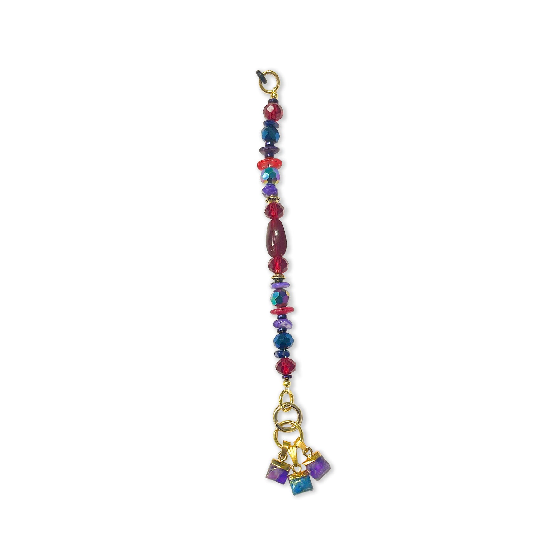 Inside the Curtain draws its inspiration from the sacred moment before revelation — the space between concealment and clarity. Strung with iridescent faceted beads that catch shifting light, and grounded by a trio of gem-like cubes, this handmade charm hints at mystery, movement, and liberation. Each glint reflects the beauty of emerging truth — a journey from shadow to purpose. One of a kind, it slides securely onto your PuffCuff with a soft silicone jump ring. Tension-free, deeply symbolic, and gift-boxed.